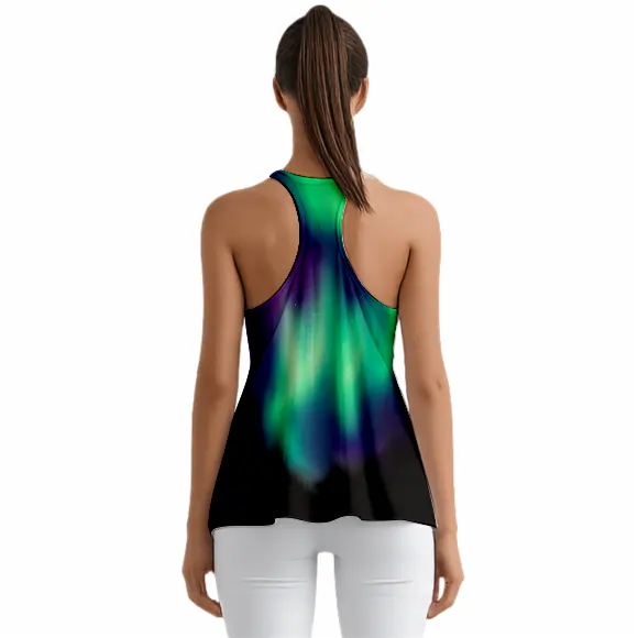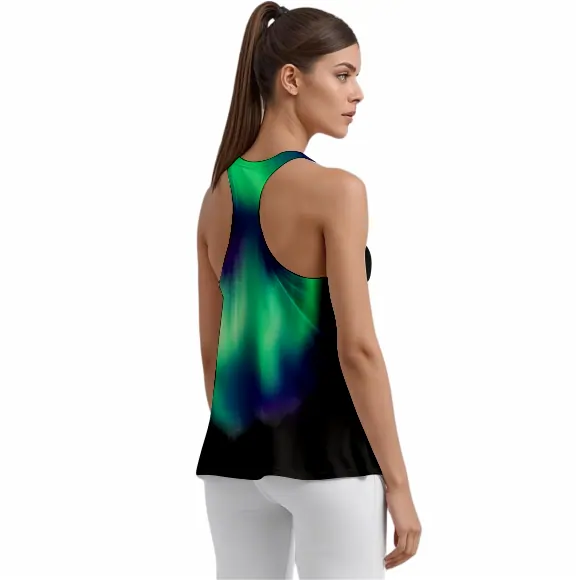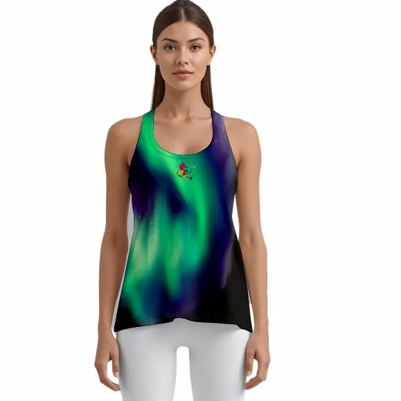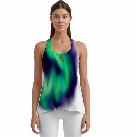 Magia que ilumina tu día. Esta colección nace inspirada en los cielos del norte y en el espectáculo natural de la aurora boreal. Su estampado fusiona elegantes tonos verdes y púrpuras, dando vida a un diseño lleno de luz, movimiento y fantasía. La colección se complementa con nuestra camiseta estilo espalda nadadora Aurora Boreal , de edición limitada que