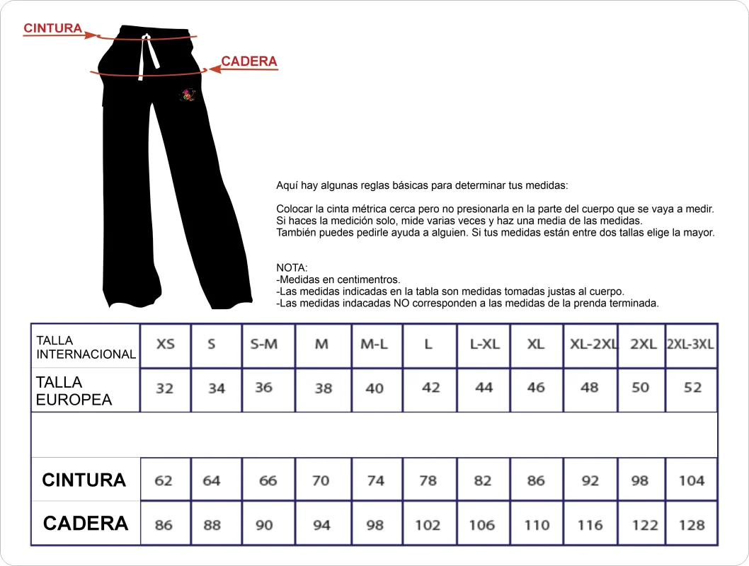TABLA TALLAS PANTALON SPORT ANCHOS