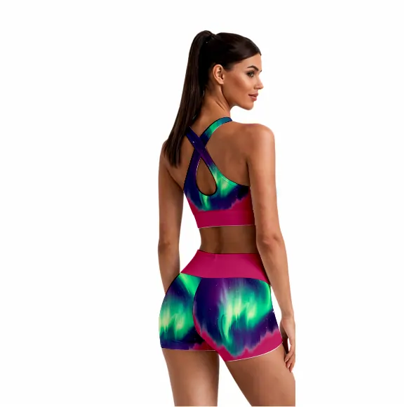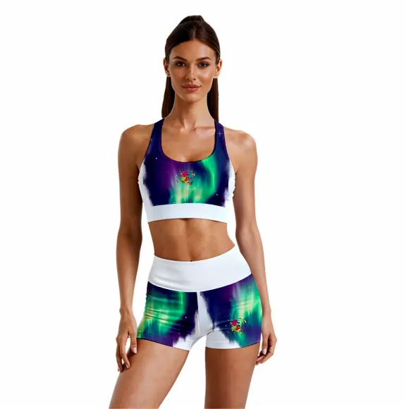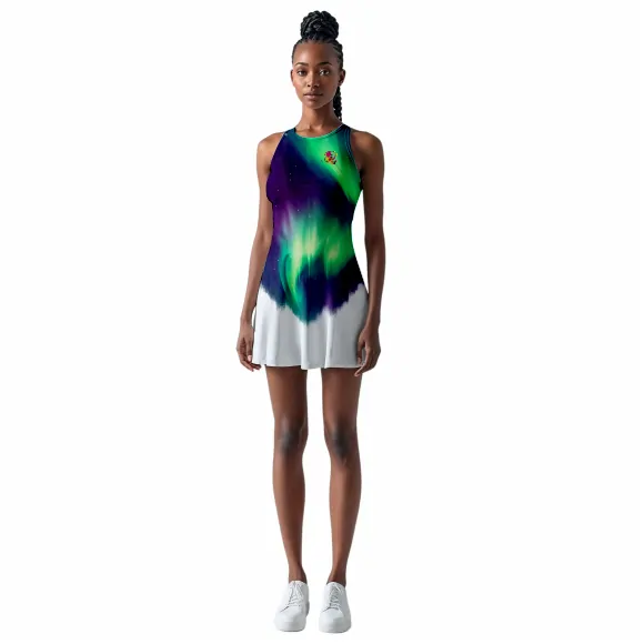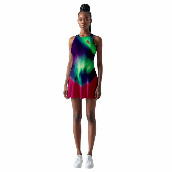Magia que ilumina tu día. Esta colección nace inspirada en los cielos del norte y en el espectáculo natural de la aurora boreal. Su estampado fusiona elegantes tonos verdes y púrpuras, dando vida a un diseño lleno de luz, movimiento y fantasía. La colección se complementa con un vestido versátil de estilo espalda nadadora Aurora Boreal , de edición limitada que incluye tops más cortos pensados para quienes buscan una prenda especial diferente que aporte personalidad, comodidad y sofisticación a su estilo diario.